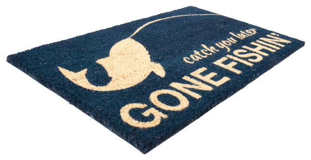 Gone Fishing Non Slip Coir Doormat contemporary-doormats